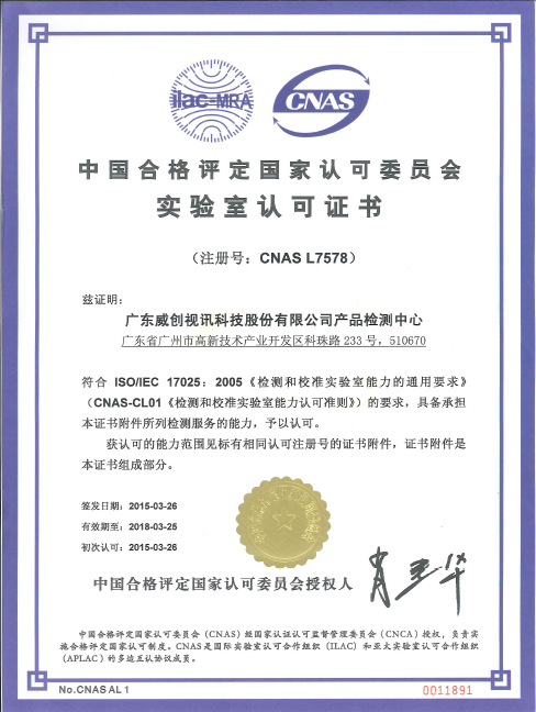 ●国家认可委员会(CNAS)实验室认可证书; |